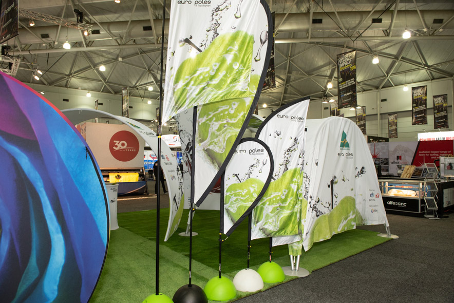 Euro Poles and Flag Displays is a proud Australian Company that prides its self on being an Australian Manufacturer. All our products are completely finished in our own factory. We have the capability of producing in excess of 60,000 sq meters of print per day. Our main focus is on roll to roll, soft signage and Display products. We are have the Australasian agency for the unique stylish Vario Range of display systems, these are a high quality Tubular European modular display system, covered with a specialty stretch fabric sock. Ideal for exhibitions and in house expos, or creating a themed experience easily. The printing is done using the very latest EFI FabriVu 340 direct to textile printer at 2440 dpi, and finished by our very own skilled finishing team all under the one roof. We offer a full range of Display flags that include the Nexus range made under license here in our own factory again by Australians. Manufactured in Australia, by Australians for Australia.