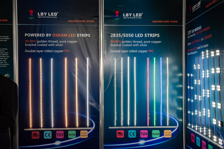 LBY is a professional manufacturer that specializes in development, production, marketing of LED Light Source for worldwide sign industry. Founded in 2004, 500 employees, 10,000㎡ factory area. All products has passed CE, RoHS, UL certificate, 3-5 years warranty. Now product mainly divides into 4 series: 1. DC12/24V - LED Module & LED Rigid Bar - normally using for illuminating channel letter, or advertising light box, or interior illumination etc. 2. DC12/24V - Flexible LED Strips, also known as Ribbon LED, LED Strips - normally using for interior decoration lighting, city lighting, landscape lighting etc. 3. AC110-220V - LED Module / LED Rigid Bar for advertising signs. 4. LED Power Supply & LED Strips Controller. During this fair, we will display some new and extrordinarily popular products.